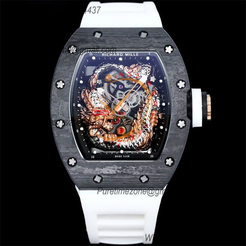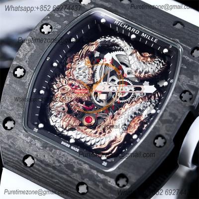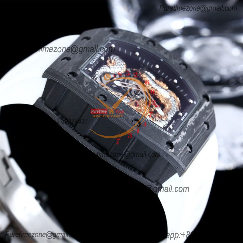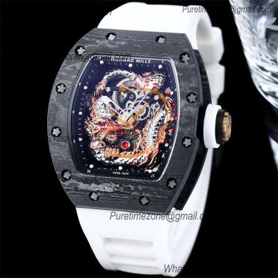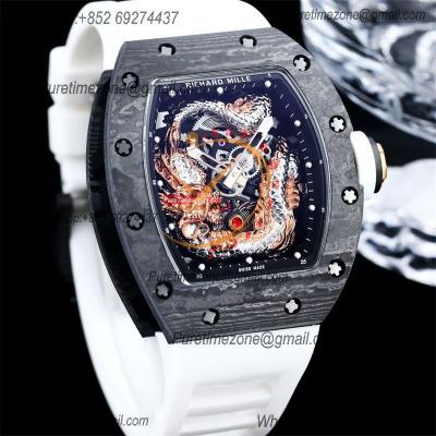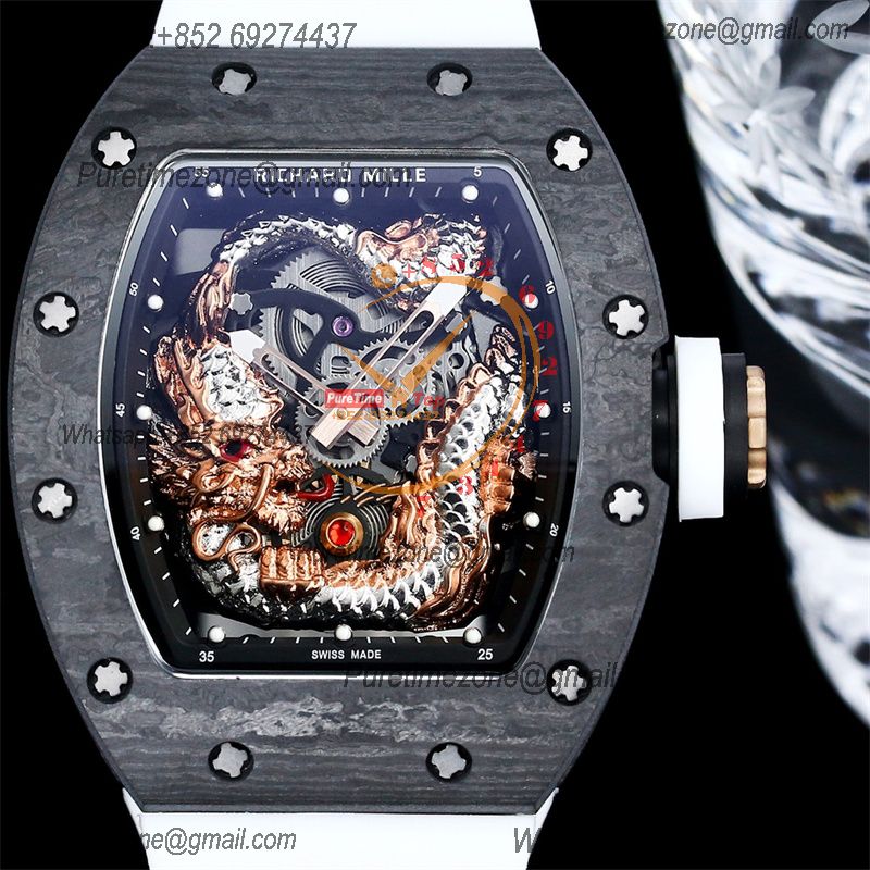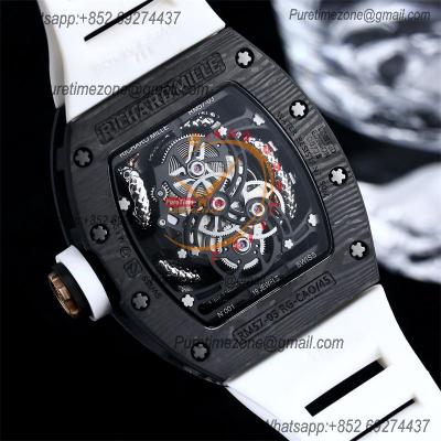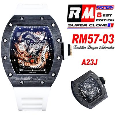 RM57-03 Dragon-Jackie Chan Automatic Tourbillon Mens Watch RMF Black Carbon Fiber Skeleton Dial White Rubber CHS
