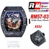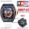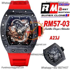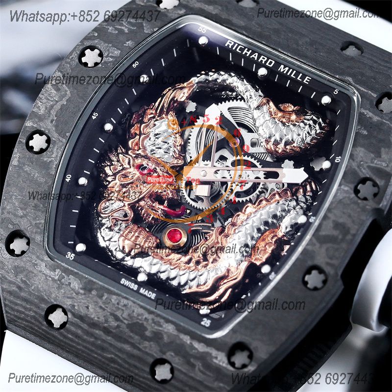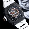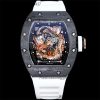 Home Richard Mille RM57-03 Dragon-Jackie Chan Automatic Tourbillon Mens Watch RMF Black Carbon Fiber Skeleton Dial White Rubber CHS