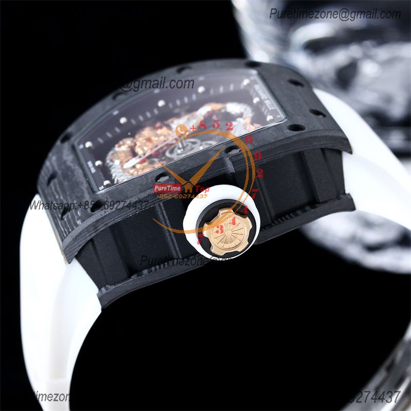 RM27-05 Flying Tourbillon Rafael Nadal White Carbon Automatic Mens Watch RMF Best Edition Black Skeleton Dial Lightweigh