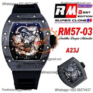 RM57-03 Dragon-Jackie Chan Automatic Tourbillon Mens Watch RMF Carbon Fiber Skeleton Dial All Black Rubber CHS $750.00 $500.00