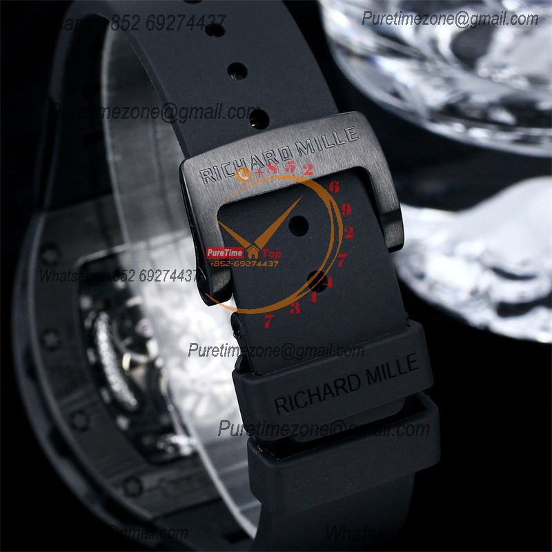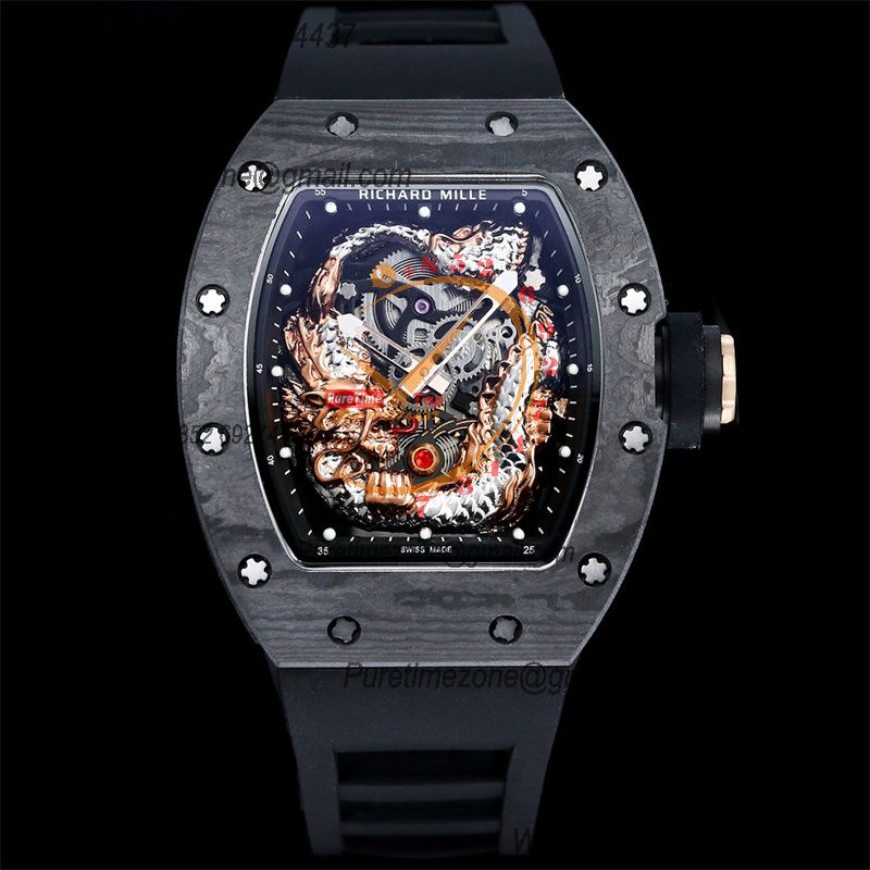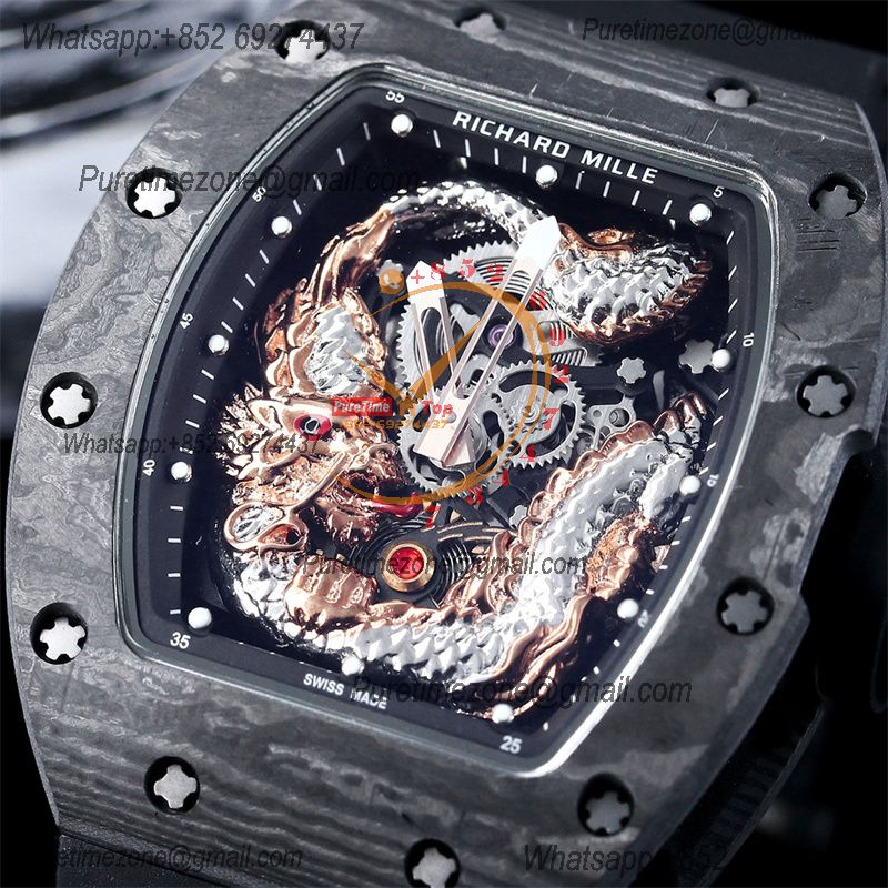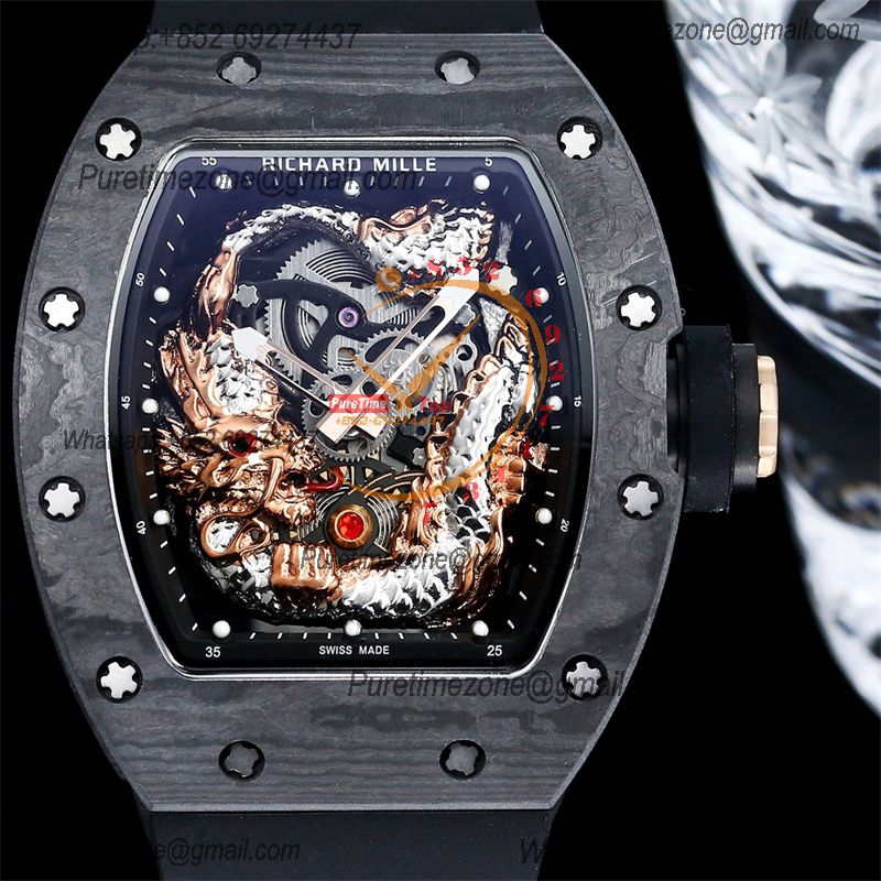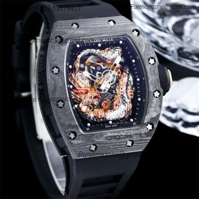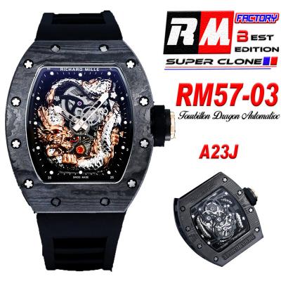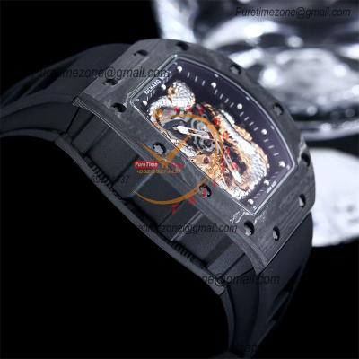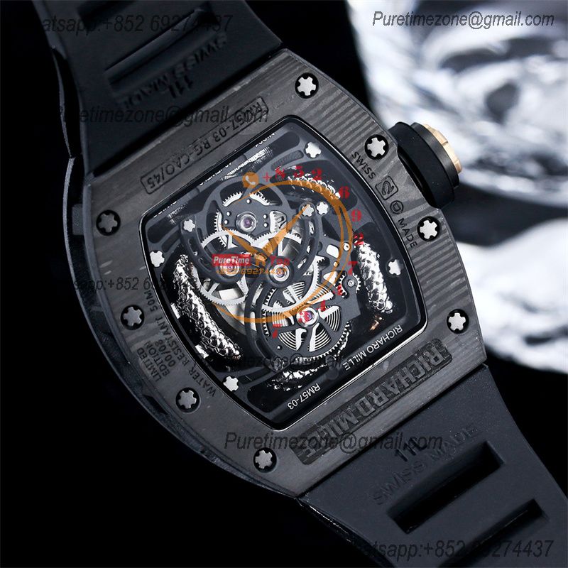 RM57-03 Dragon-Jackie Chan Automatic Tourbillon Mens Watch RMF Carbon Fiber Skeleton Dial All Black Rubber CHS