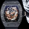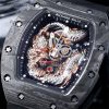 RM57-03 Dragon-Jackie Chan Automatic Tourbillon Mens Watch RMF Black Carbon Fiber Skeleton Dial White Rubber CHS $750.00 $500.00