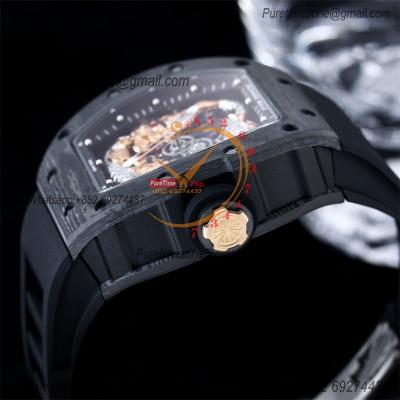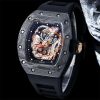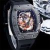 RM12-01 José Balvin Automatic Tourbillon Mens Watch RMF Carbon Fiber Skeleton Dial All Black Rubber Strap CHS AAA