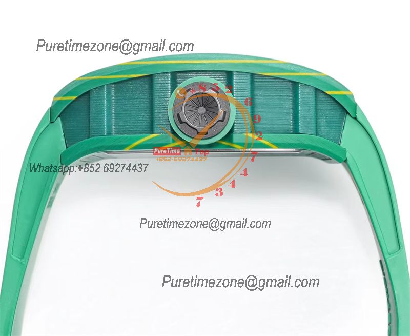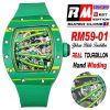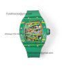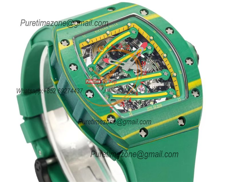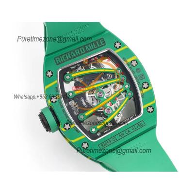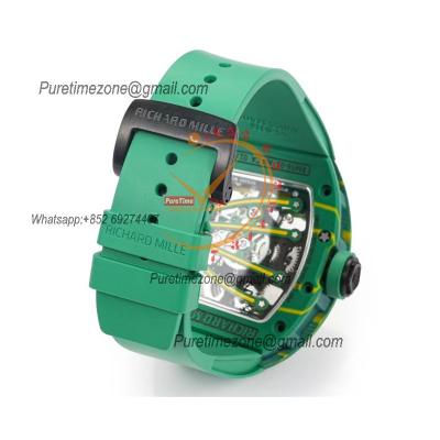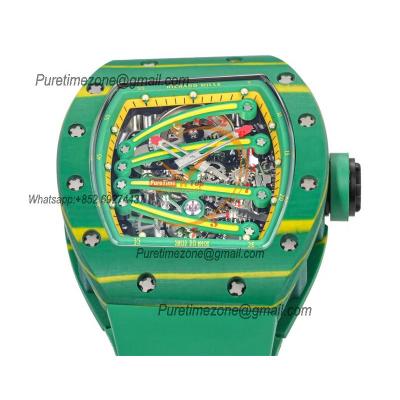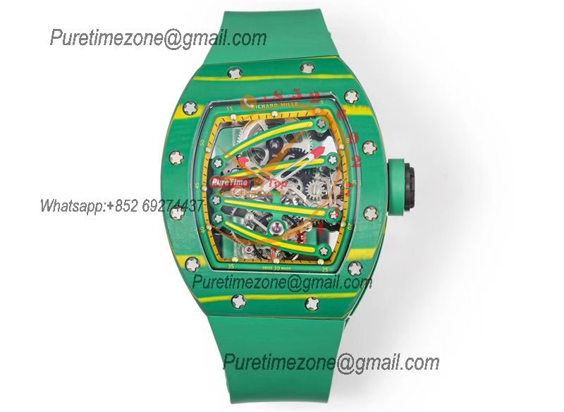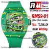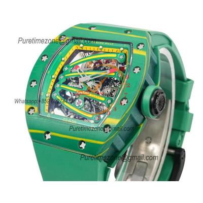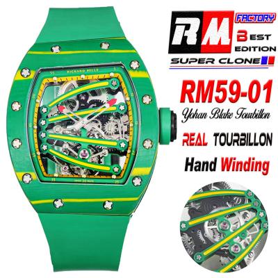 RM59-01 Real Tourbillon Hand Winding Mens Watch Best Edition RMF Black Carbon Green Skeleton Dial Gren Rubber CHS