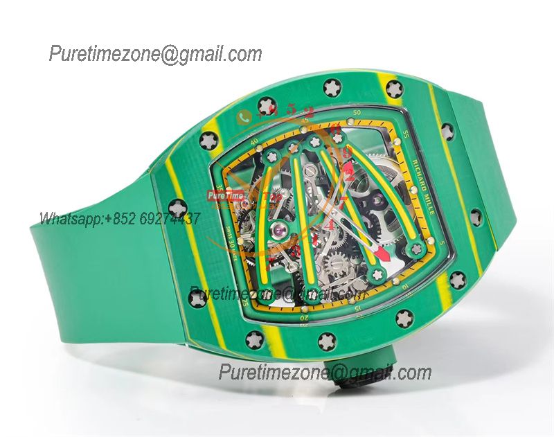 RM59-01 Real Tourbillon Hand Winding Mens Watch Best Edition RMF Black Carbon Green Skeleton Dial Yellow Rubber CHS $1,275.00 $850.00