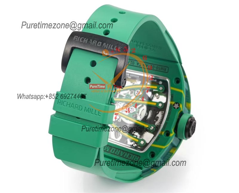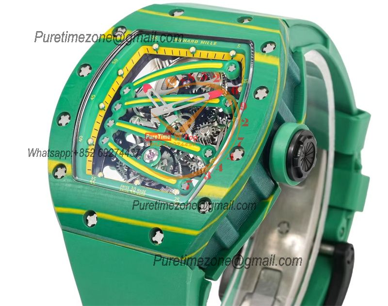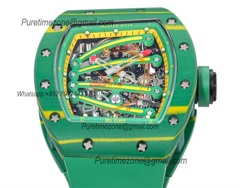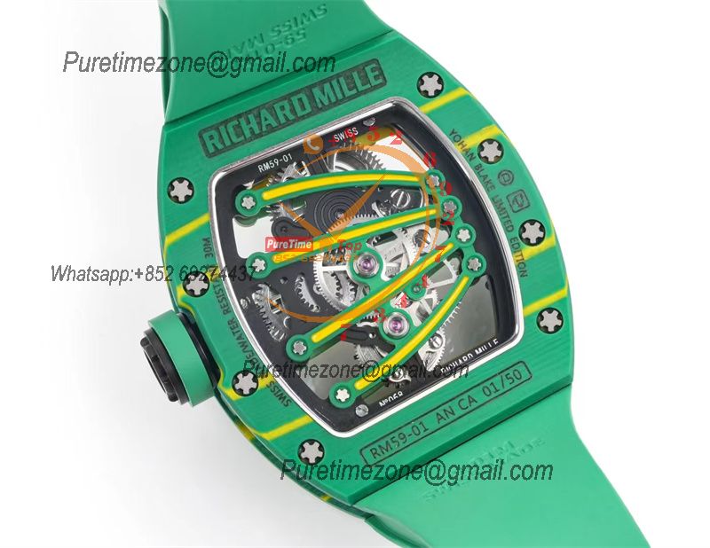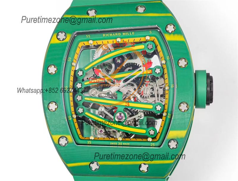 Home Richard Mille RM59-01 Real Tourbillon Hand Winding Mens Watch Best Edition RMF Black Carbon Green Skeleton Dial Gren Rubber CHS
