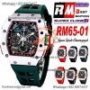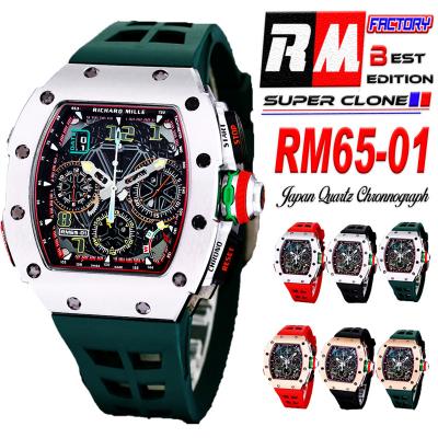 Home Richard Mille RM65-01 Japan Quartz Chronograph Mens Watch RMF Steel Case Black Dial Green Rubber Strap CHS
