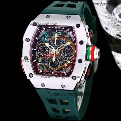 RM011 Felipe Massa A7750 Automatic Chronograph Mens Watch RMF Best Edition SS Black Dial Green Rubber Strap CHS