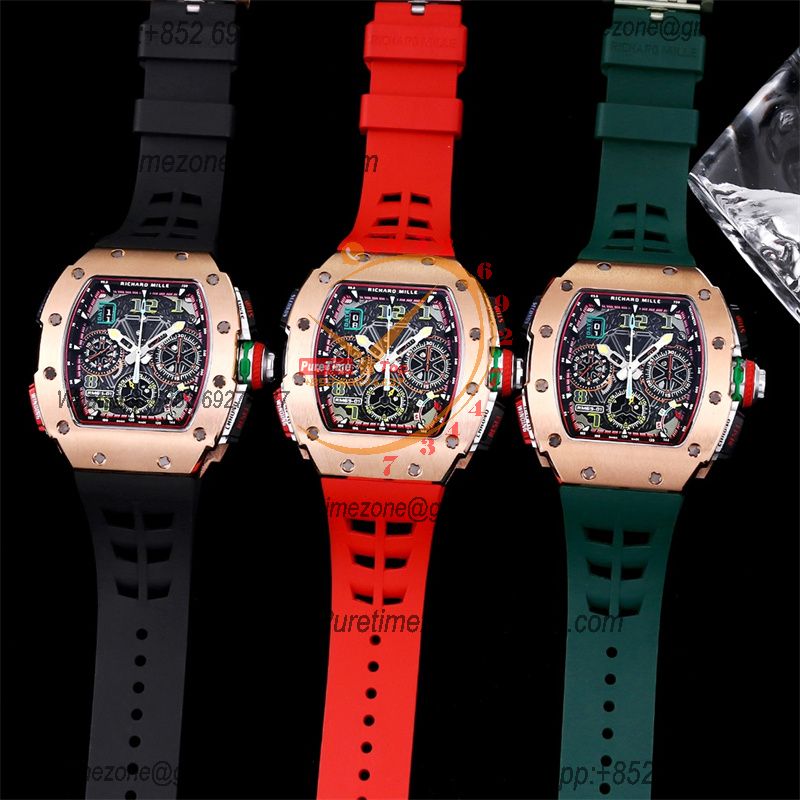 RM011 Felipe Massa A7750 Automatic Chronograph Mens Watch RMF Best Edition SS Black Dial Rubber Strap CHS
