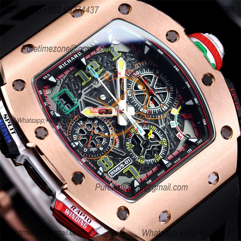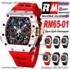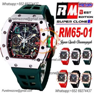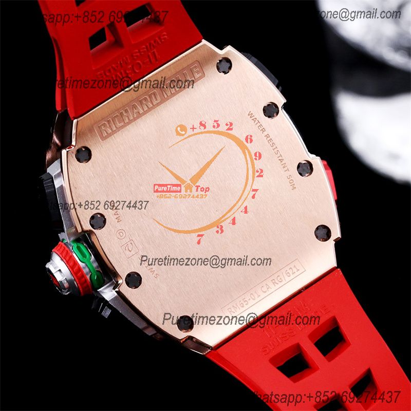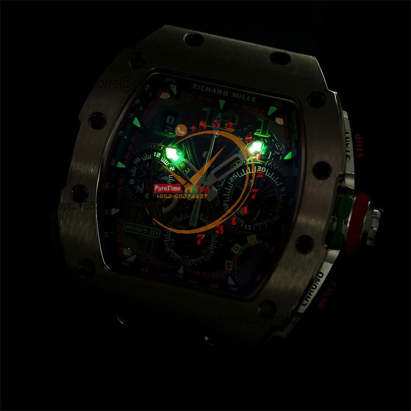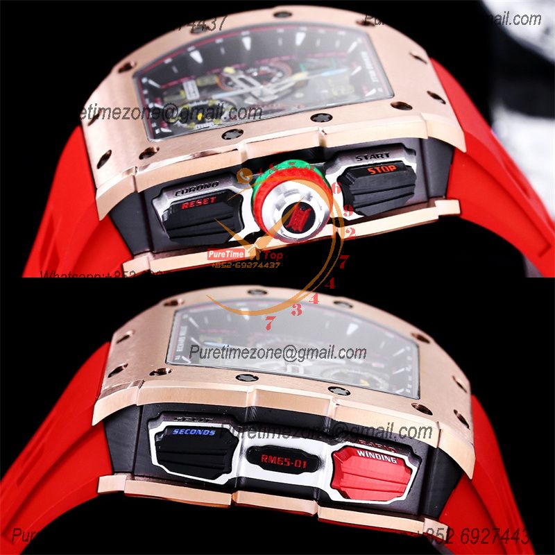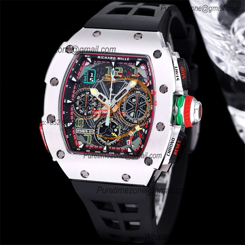 Home Richard Mille RM65-01 Japan Quartz Chronograph Mens Watch RMF Steel Case Black Dial Red Rubber Strap CHS