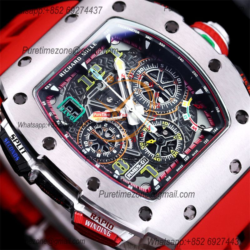 RM011 Felipe Massa A7750 Automatic Chronograph Mens Watch RMF Best Edition SS Black Dial Red Rubber Strap CHS