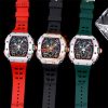 RM12-01 José Balvin Automatic Tourbillon Mens Watch RMF Carbon Fiber Skeleton Dial All Black Rubber Strap CHS AAA