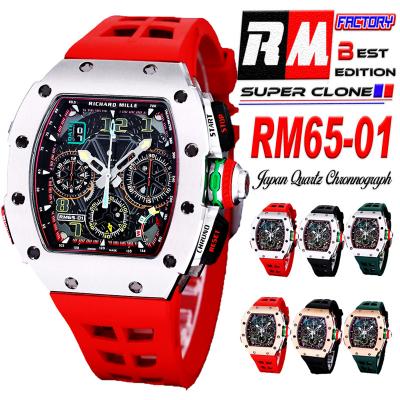 RM65-01 Japan Quartz Chronograph Mens Watch RMF Steel Case Black Dial Red Rubber Strap CHS