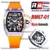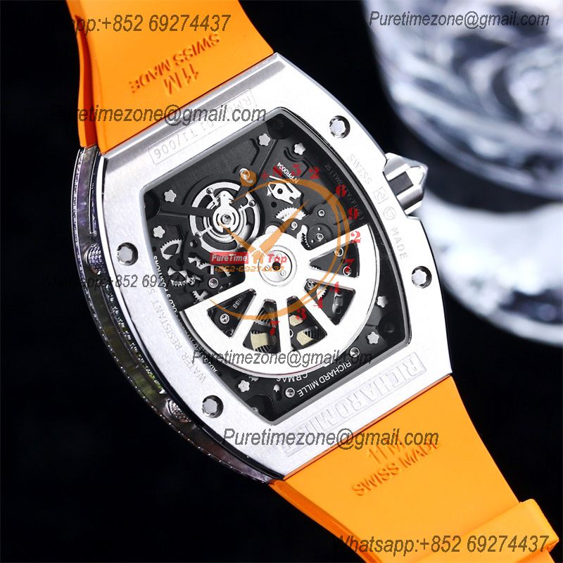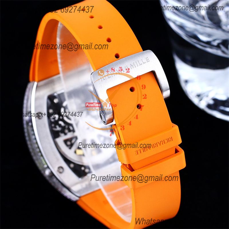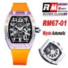 RM67-01 Miyota Automatic Mens Watch RMF Rainbow Diamond Bezel Skeleton Dial Orange Rubber Strap CHS