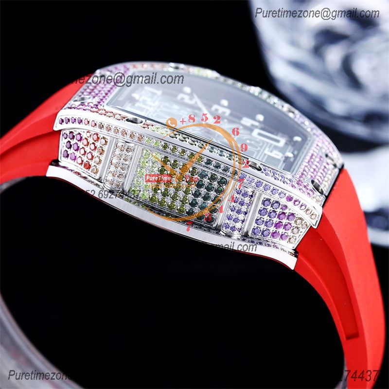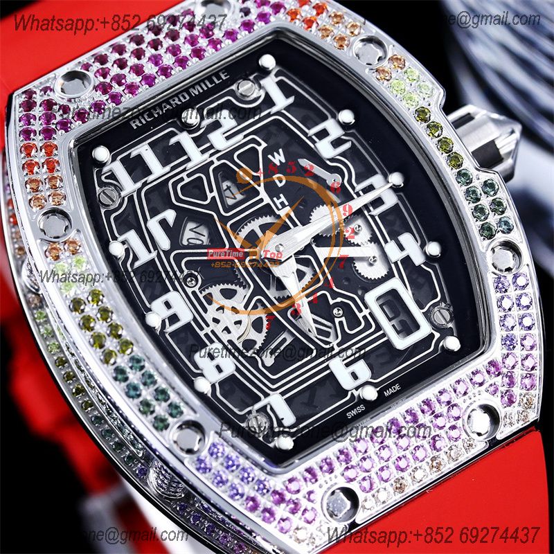 Home Richard Mille RM67-01 Miyota Automatic Mens Watch RMF Rainbow Diamond Bezel Skeleton Dial Red Rubber Strap CHS