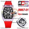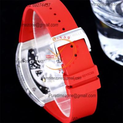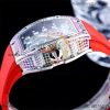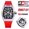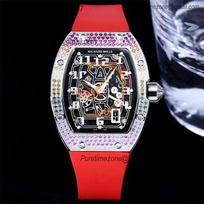 RM67-01 Miyota Automatic Mens Watch RMF Rainbow Diamond Bezel Skeleton Dial Red Rubber Strap CHS