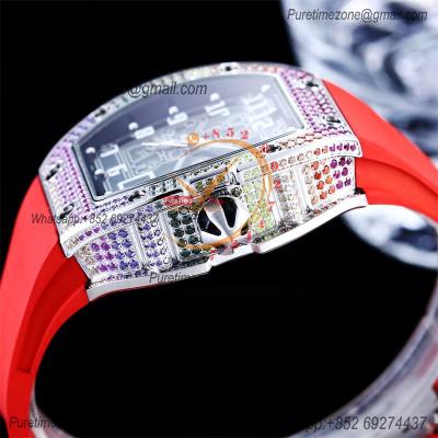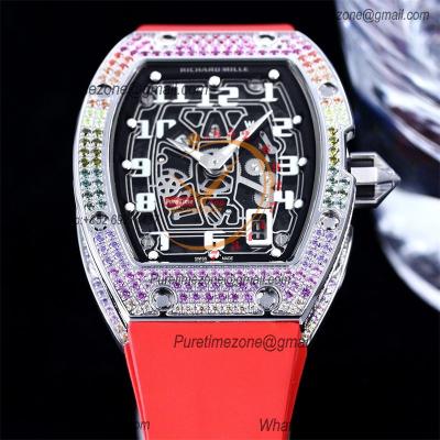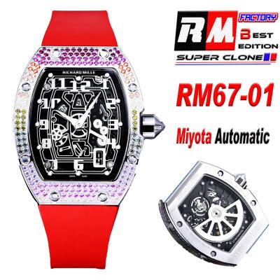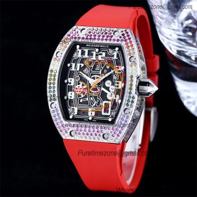 Home Richard Mille RM67-01 Miyota Automatic Mens Watch RMF Rainbow Diamond Bezel Skeleton Dial Red Rubber Strap CHS