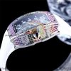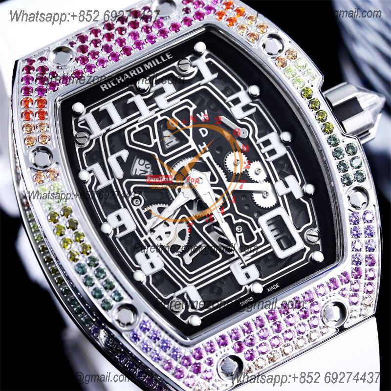 RM67-01 Miyota Automatic Mens Watch RMF Rainbow Diamond Bezel Skeleton Dial White Rubber Strap CHS