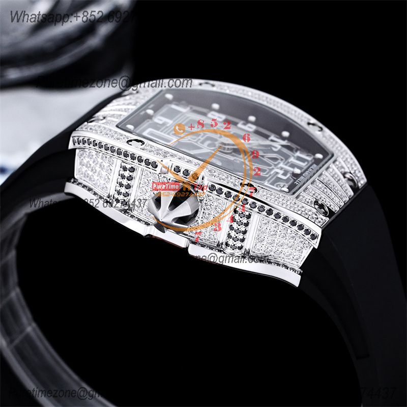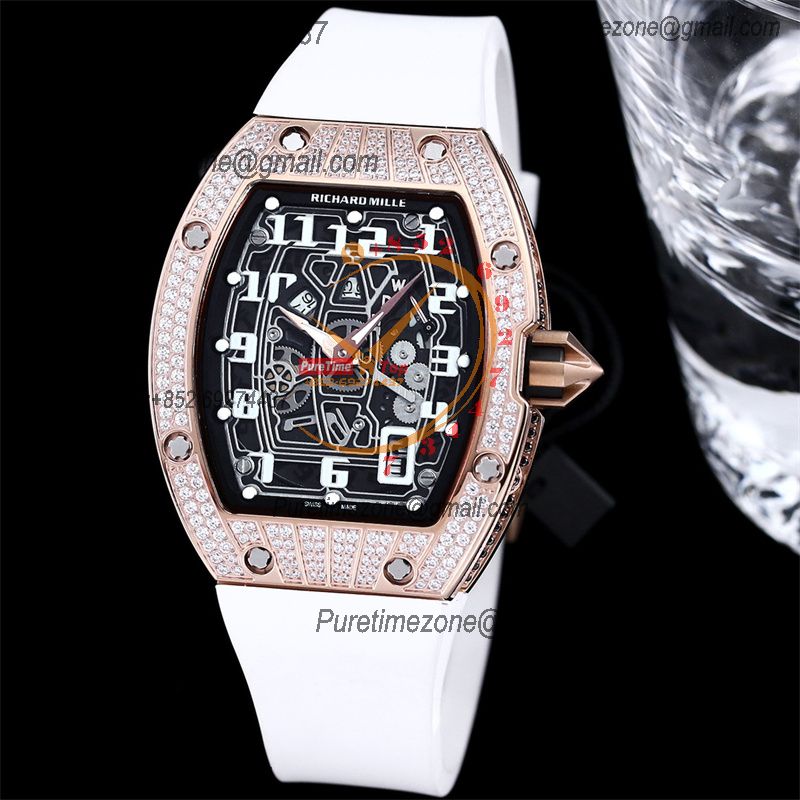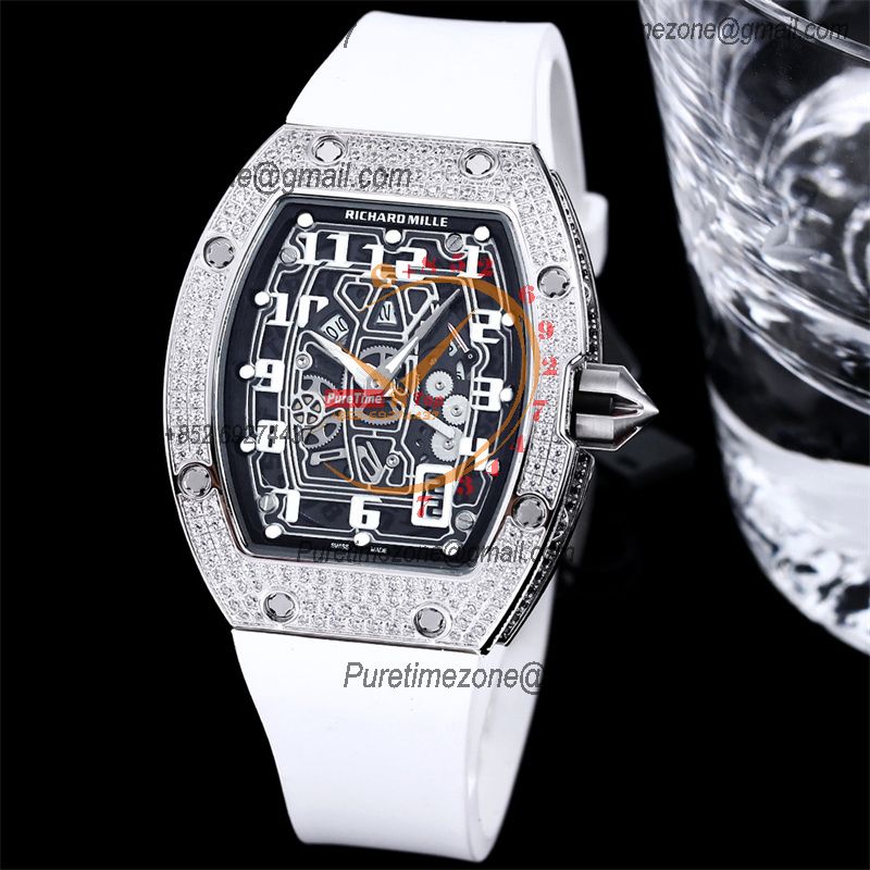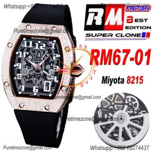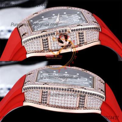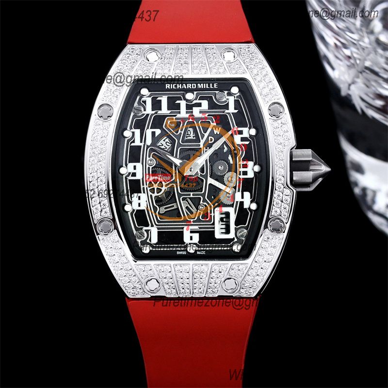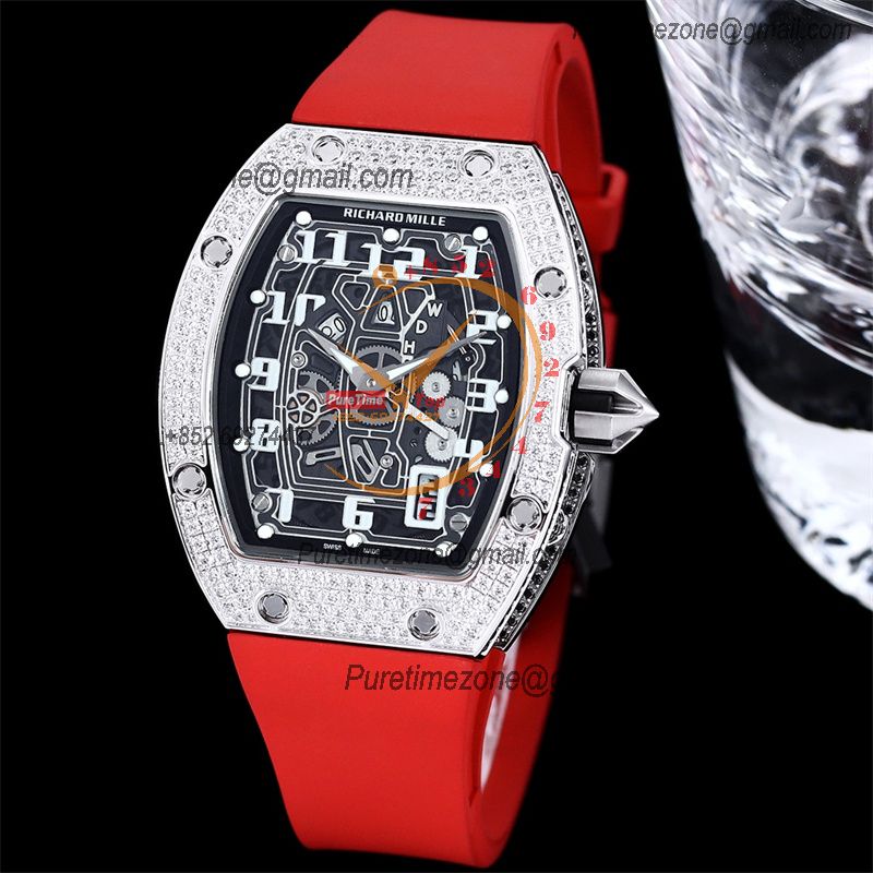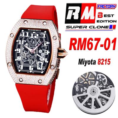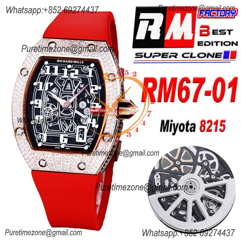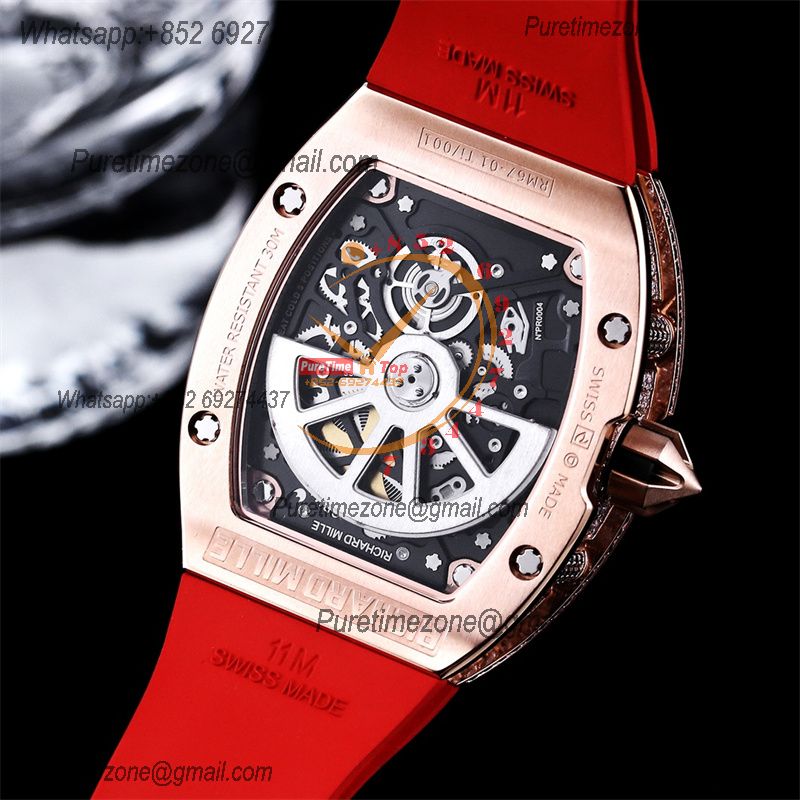 Home Richard Mille RM67-01 Miyota Automatic Mens Watch RMF RG Diamond Bezel Skeleton Dial Red Rubber Strap CHS