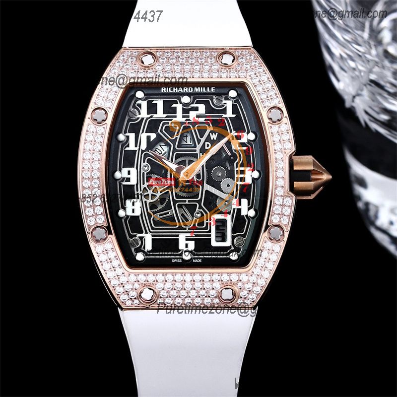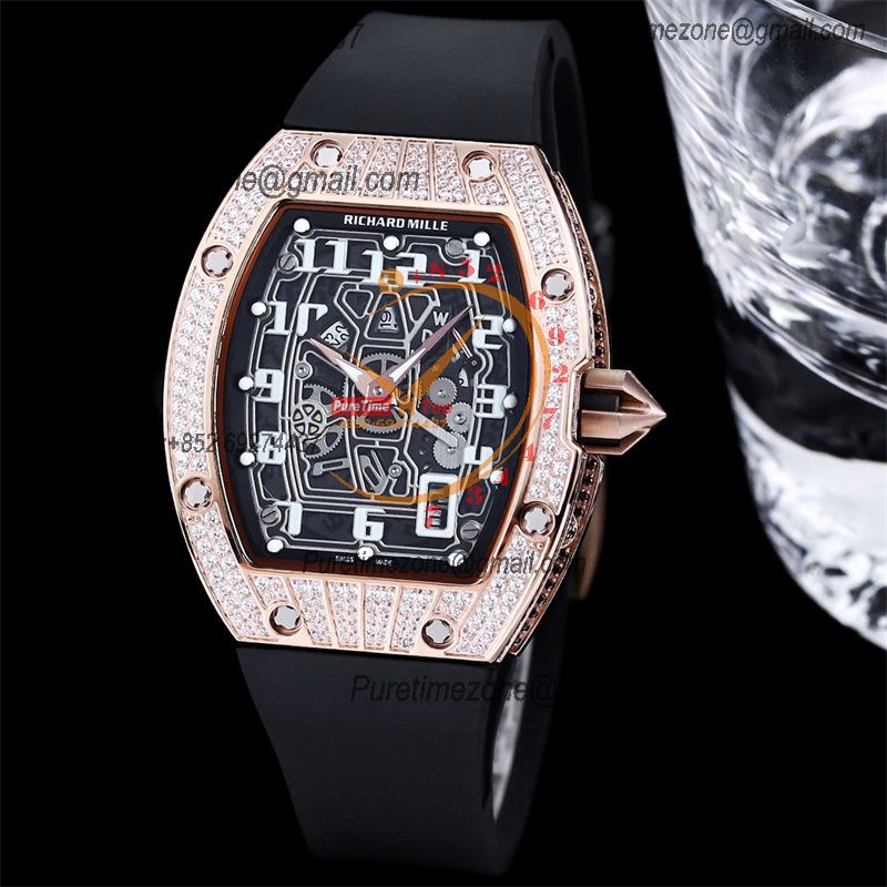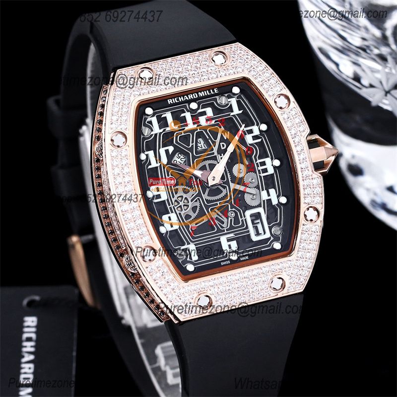 RM67-01 Miyota Automatic Mens Watch RMF RG Diamond Bezel Skeleton Dial Black Rubber Strap CHS $645.00 $430.00
