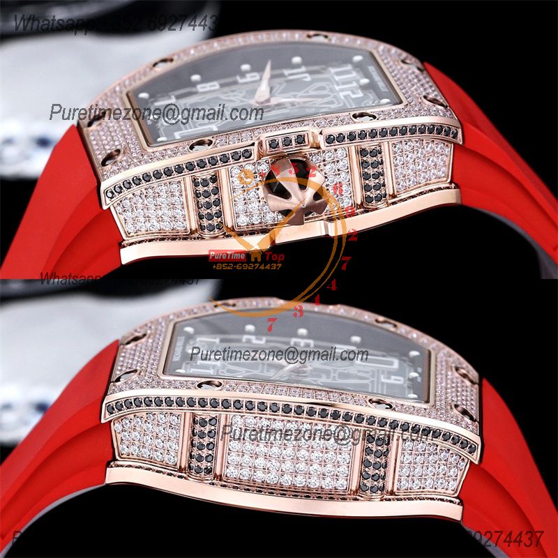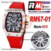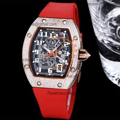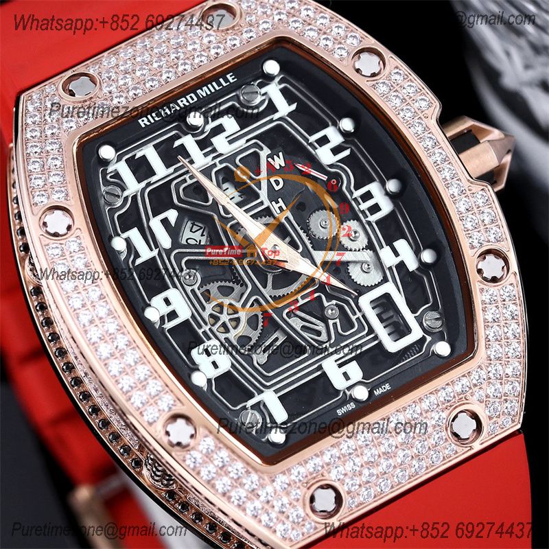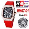 RM67-01 Miyota Automatic Mens Watch RMF RG Diamond Bezel Skeleton Dial Red Rubber Strap CHS