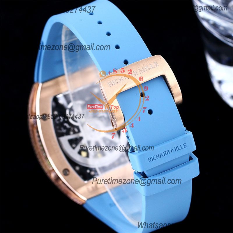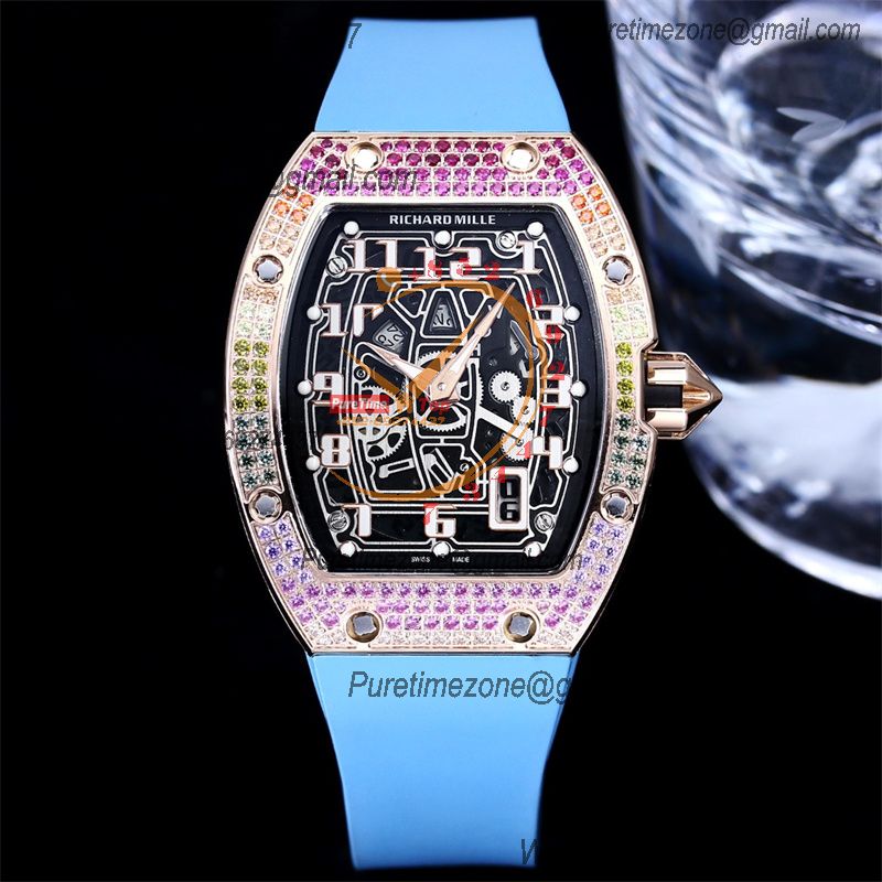 RM67-01 Miyota Automatic Mens Watch RMF RG Rainbow Diamond Bezel Skeleton Dial Blue Rubber CHS