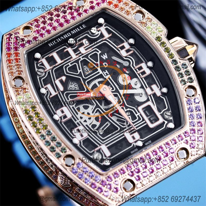 Home Richard Mille RM67-01 Miyota Automatic Mens Watch RMF RG Rainbow Diamond Bezel Skeleton Dial Blue Rubber CHS