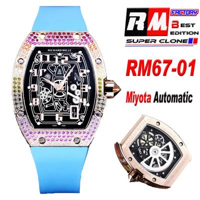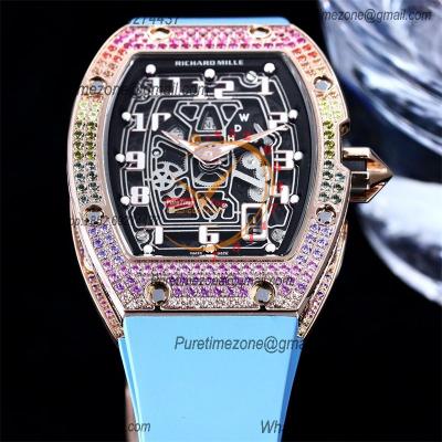 Home Richard Mille RM67-01 Miyota Automatic Mens Watch RMF RG Rainbow Diamond Bezel Skeleton Dial Blue Rubber CHS