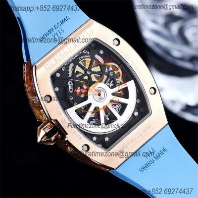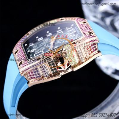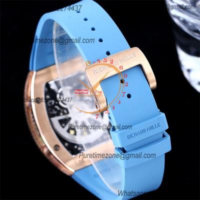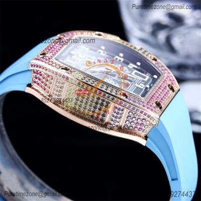 RM67-01 Miyota Automatic Mens Watch RMF RG Rainbow Diamond Bezel Skeleton Dial Blue Rubber CHS