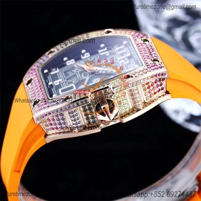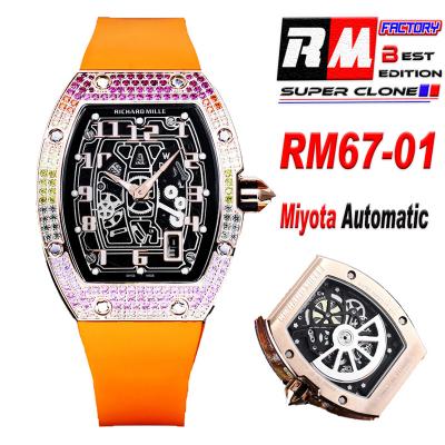 Home Richard Mille RM67-01 Miyota Automatic Mens Watch RMF RG Rainbow Diamond Bezel Skeleton Dial Orange Rubber CHS