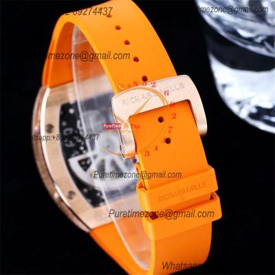 RM67-01 Miyota Automatic Mens Watch RMF RG Rainbow Diamond Bezel Skeleton Dial Orange Rubber CHS