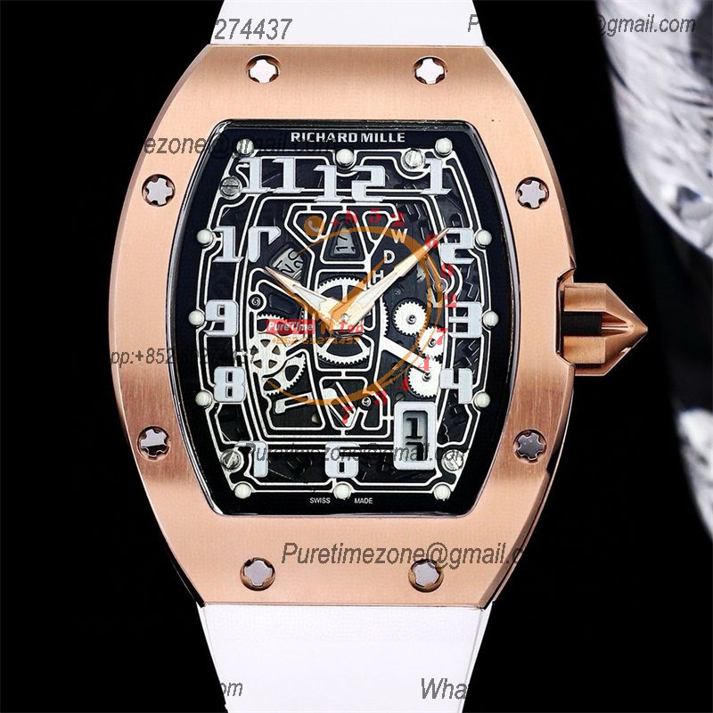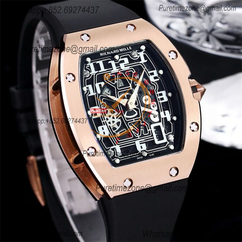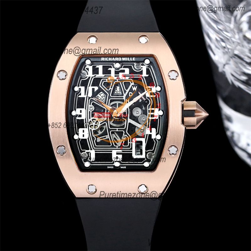 RM67-01 Miyota Automatic Mens Watch RMF RG Skeleton Dial Black Rubber Strap CHS