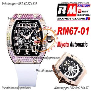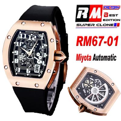 Home Richard Mille RM67-01 Miyota Automatic Mens Watch RMF RG Skeleton Dial Black Rubber Strap CHS