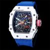 RM011 Felipe Massa A7750 Automatic Chronograph Mens Watch RMF Best Edition SS Black Dial Blue Rubber Strap CHS