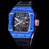 RM12-01 José Balvin Automatic Tourbillon Mens Watch RMF Black Carbon Fiber Skeleton Dial Blue Rubber Strap CHS AAA