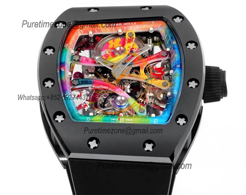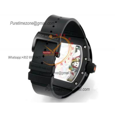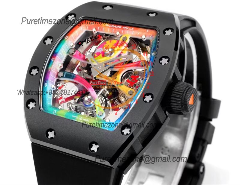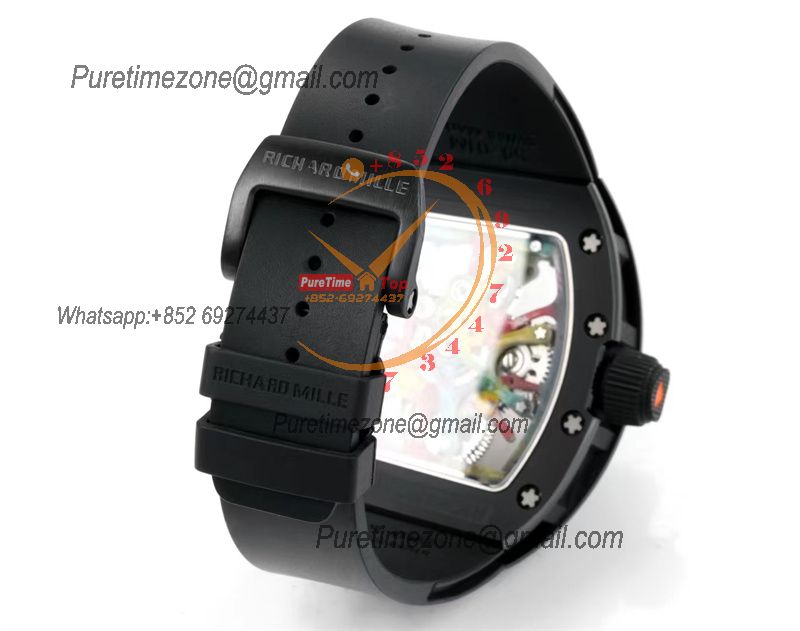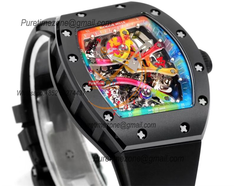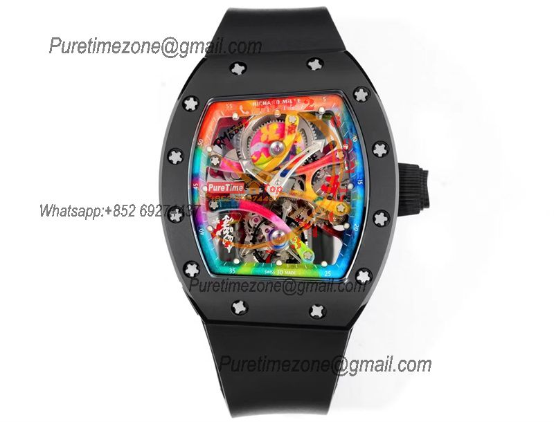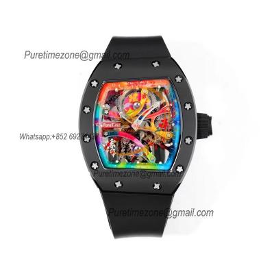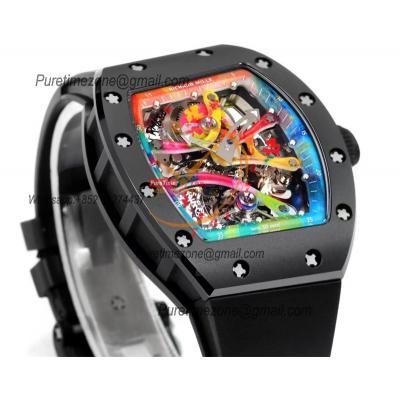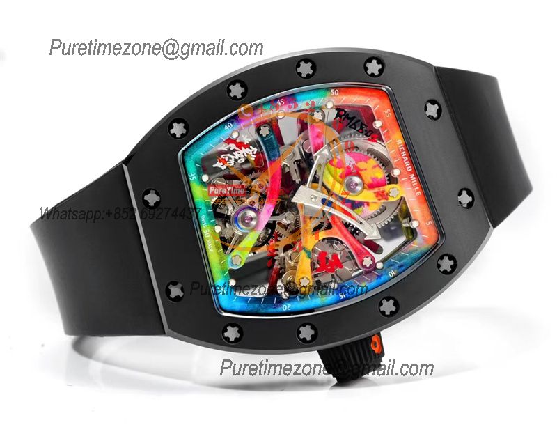 RM12-01 José Balvin Automatic Tourbillon Mens Watch RMF Carbon Fiber Skeleton Dial All Black Rubber Strap CHS AAA