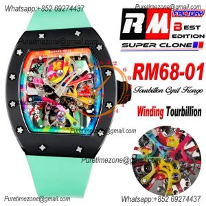 RM68-01 Cyril Kongo Real Tourbillon Manual Winding Mens Watch Best Edition RMF Black Ceramic Skeleton Dial Green Rubber $2,475.00 $1,650.00