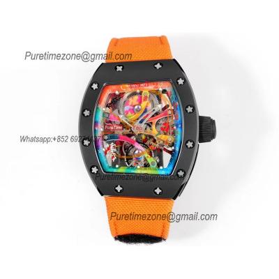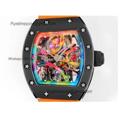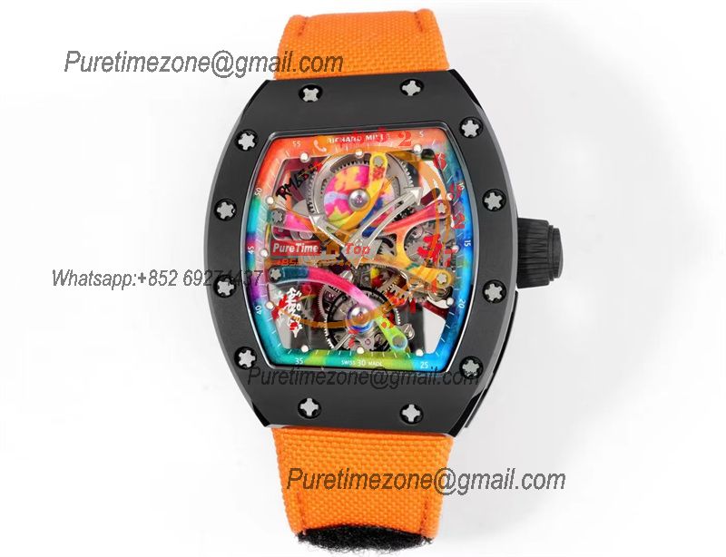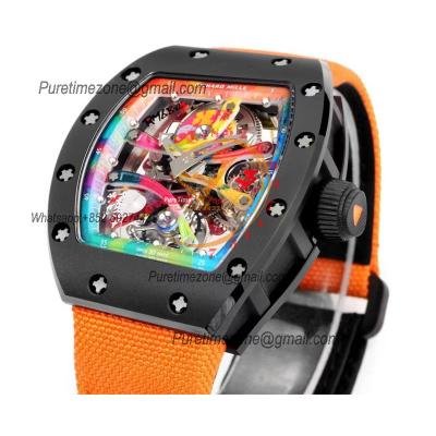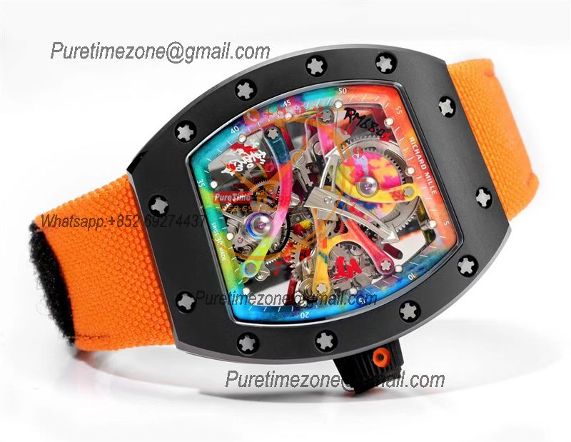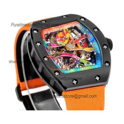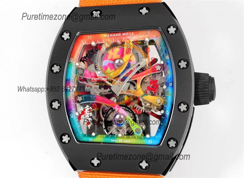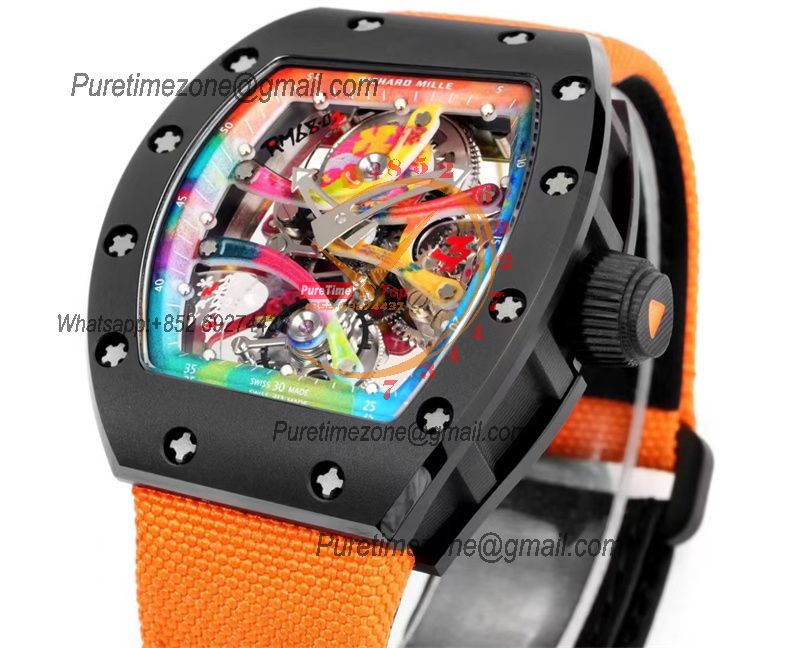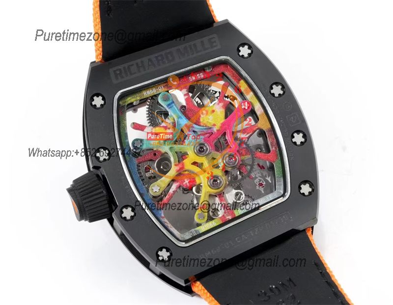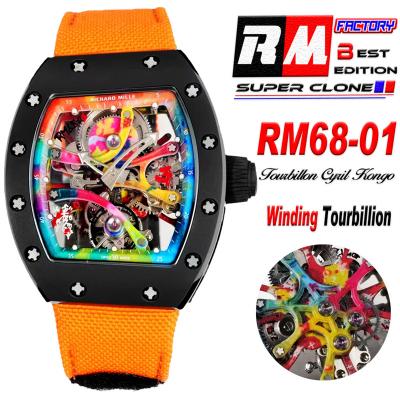 RM68-01 Cyril Kongo Real Tourbillon Manual Winding Mens Watch Best Edition RMF Black Ceramic Skeleton Dial Orange Nylon