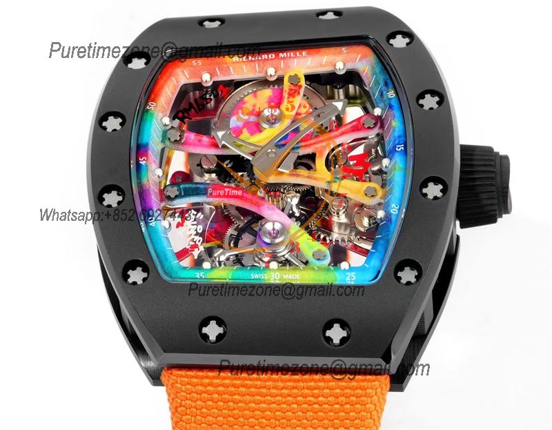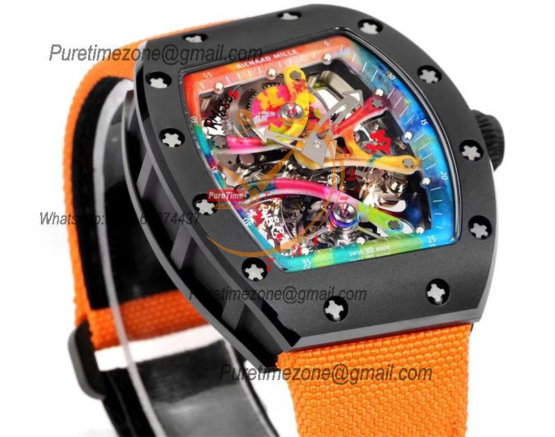Home Richard Mille RM68-01 Cyril Kongo Real Tourbillon Manual Winding Mens Watch Best Edition RMF Black Ceramic Skeleton Dial Orange Nylon