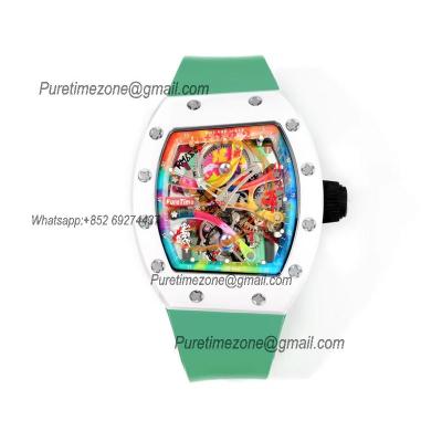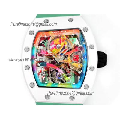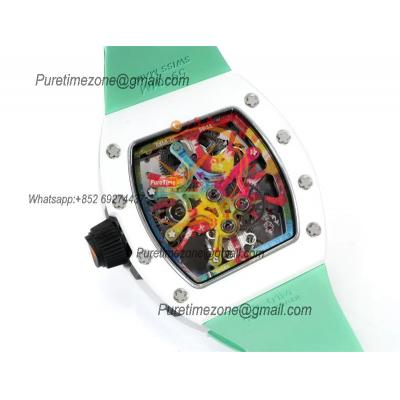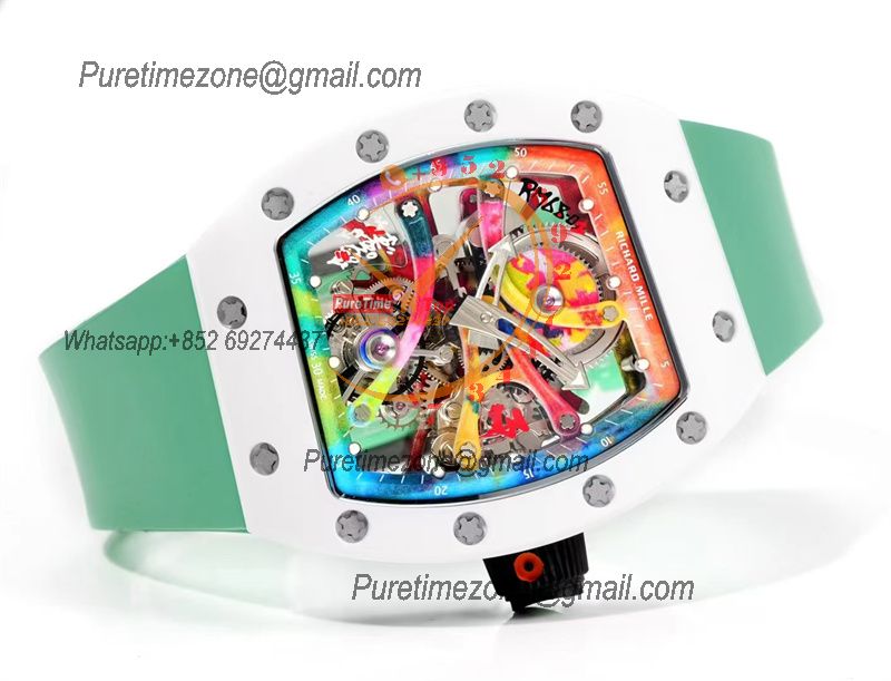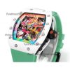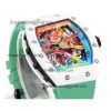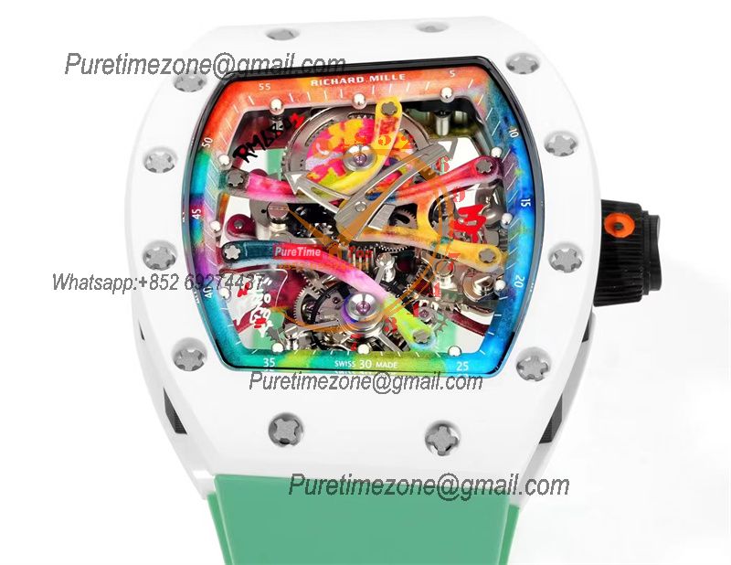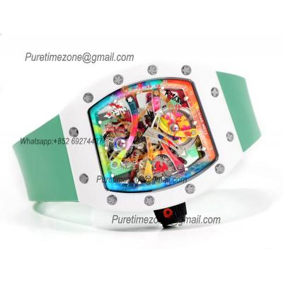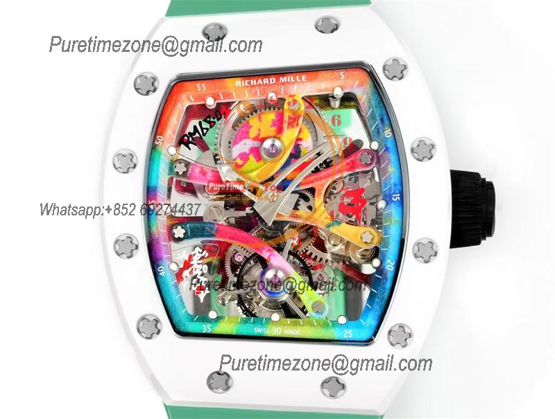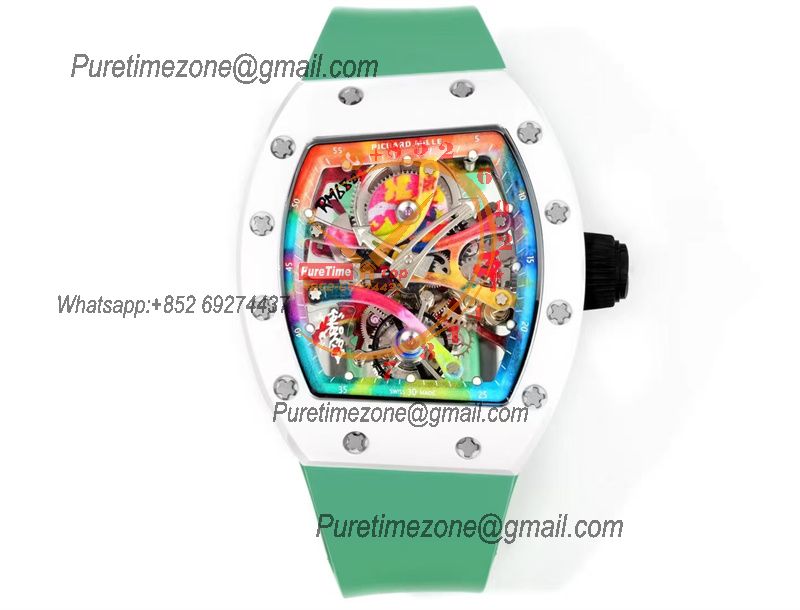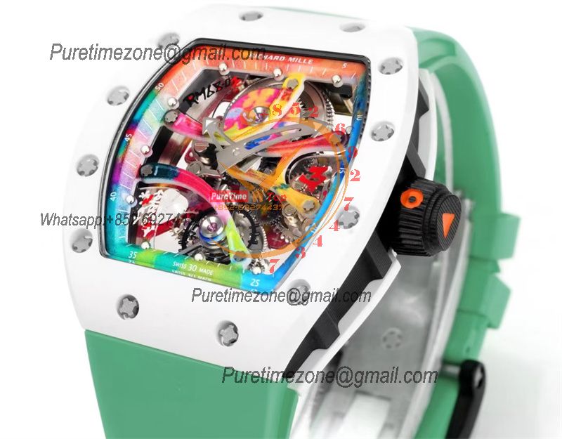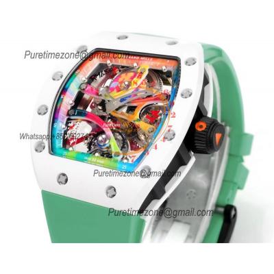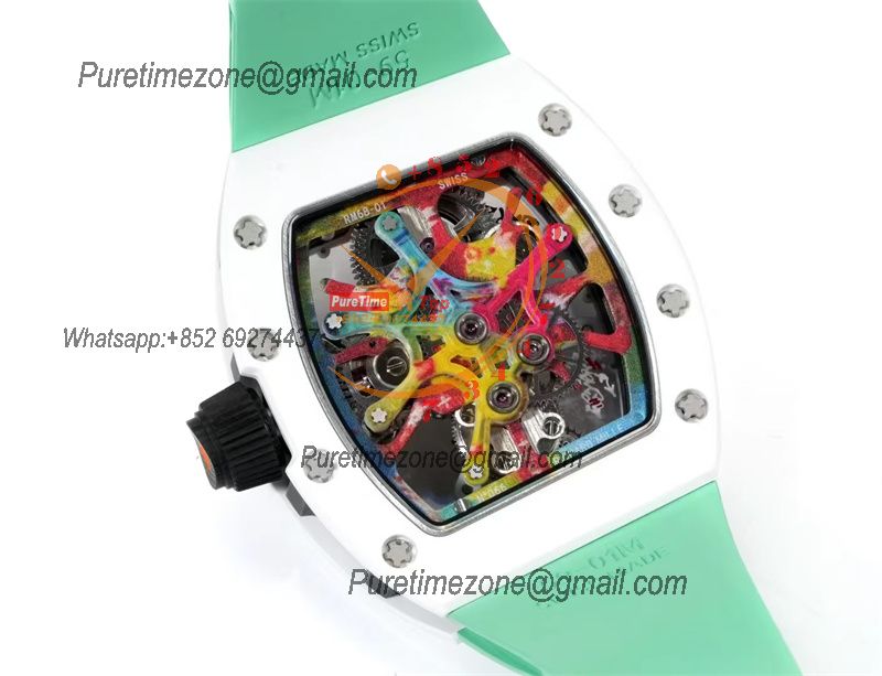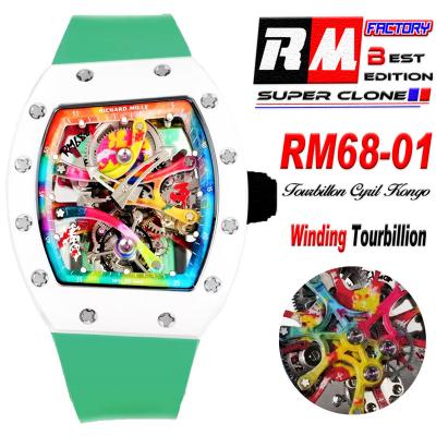 RM68-01 Cyril Kongo Real Tourbillon Manual Winding Mens Watch Best Edition RMF White Ceramic Skeleton Dial Green Rubber