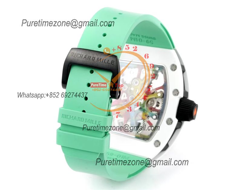 Home Richard Mille RM68-01 Cyril Kongo Real Tourbillon Manual Winding Mens Watch Best Edition RMF White Ceramic Skeleton Dial Green Rubber