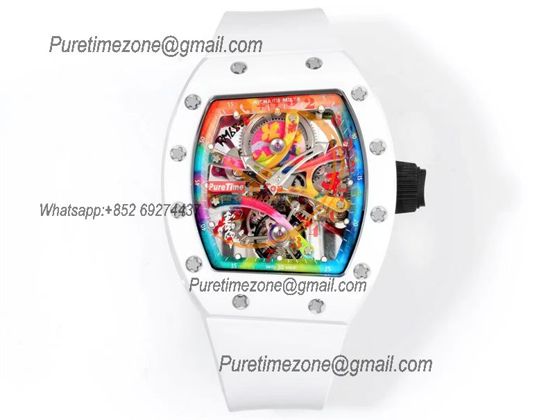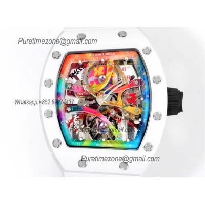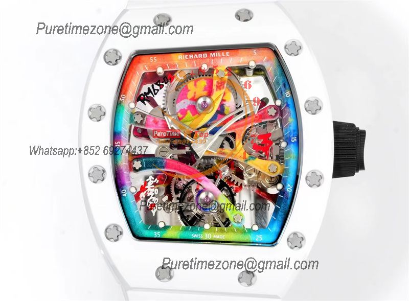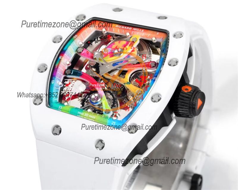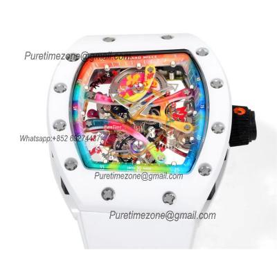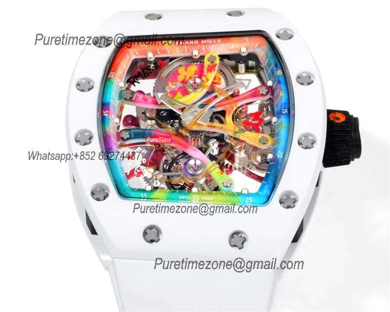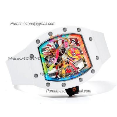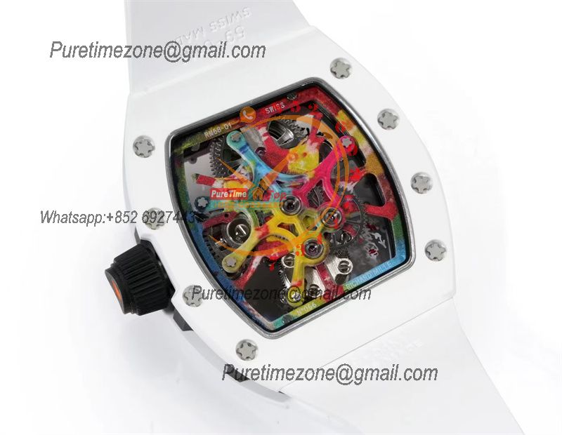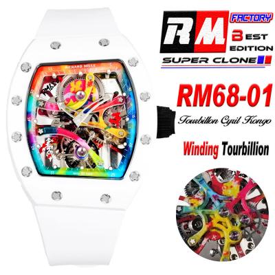 RM68-01 Cyril Kongo Real Tourbillon Manual Winding Mens Watch Best Edition RMF White Ceramic Skeleton Dial White Rubber