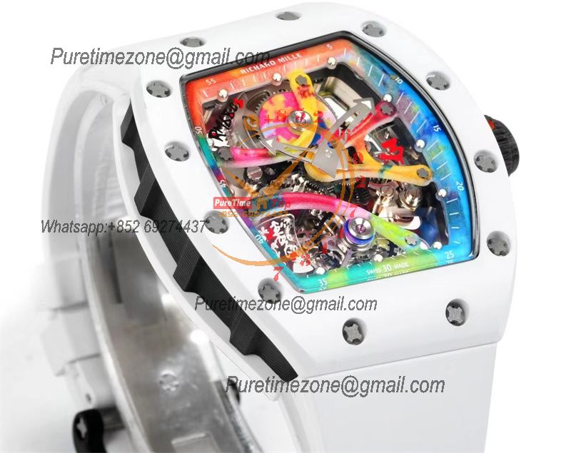 Home Richard Mille RM68-01 Cyril Kongo Real Tourbillon Manual Winding Mens Watch Best Edition RMF White Ceramic Skeleton Dial White Rubber