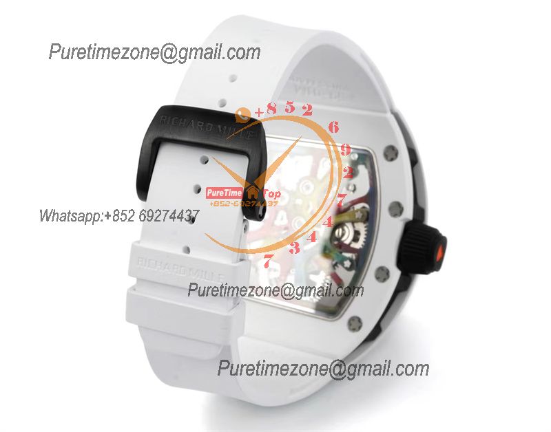 RM27-05 Flying Tourbillon Rafael Nadal White Carbon Automatic Mens Watch RMF Best Edition Black Skeleton Dial Lightweigh