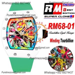 RM68-01 Cyril Kongo Real Tourbillon Manual Winding Mens Watch Best Edition RMF White Ceramic Skeleton Dial Green Rubber $2,475.00 $1,650.00
