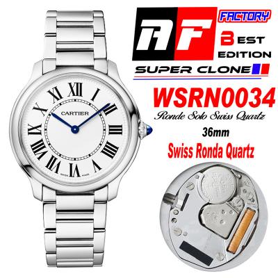 Ronde Louis Medium WSRN0034 Swiss Quartz Womens Watch Best Edition AF 36mm White Dial SS Bracelet