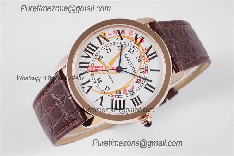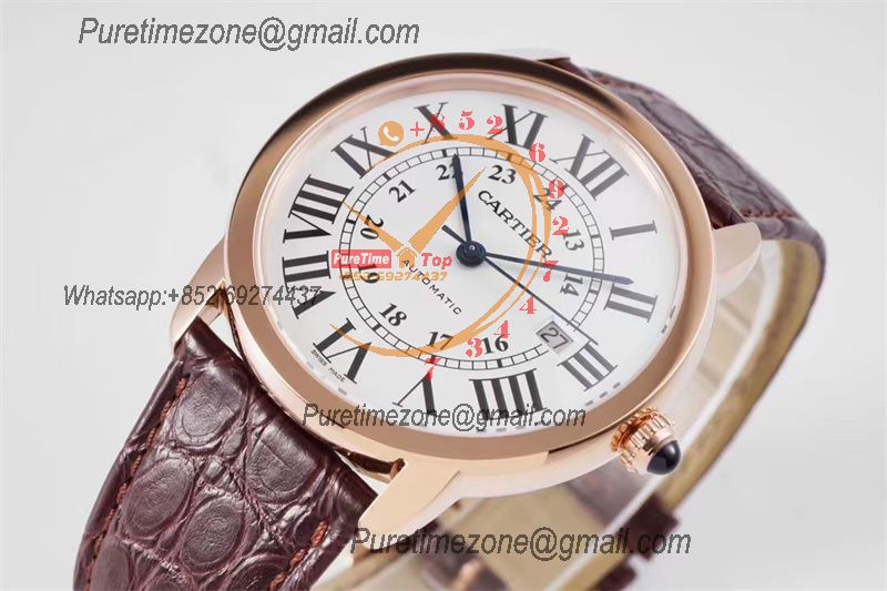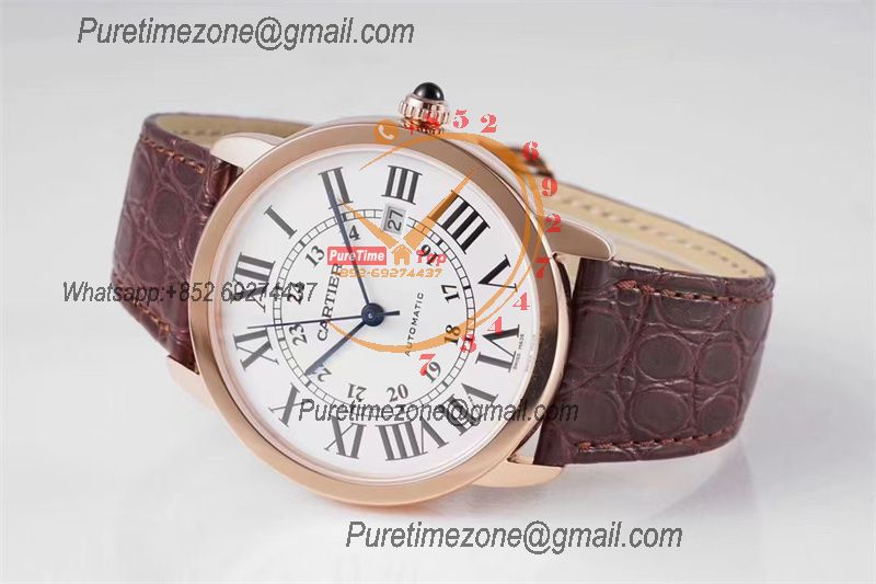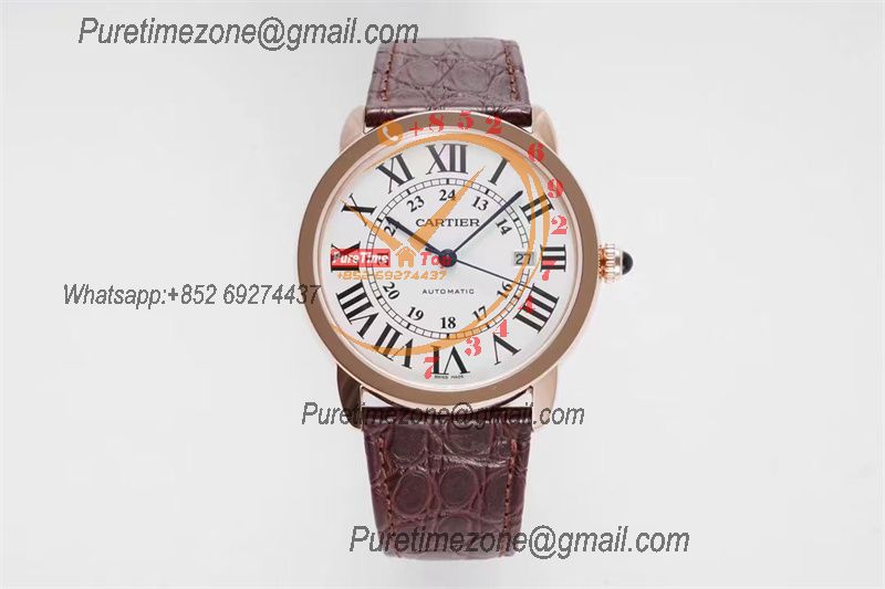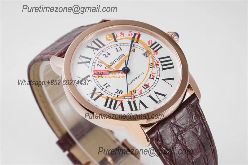 Home Cartier Ronde de Cartier Ronde Solo W6701009 M9015 Automatic Mens Watch Best Edition AF 42mm Rose Gold White Dial Brown Leather Strap
