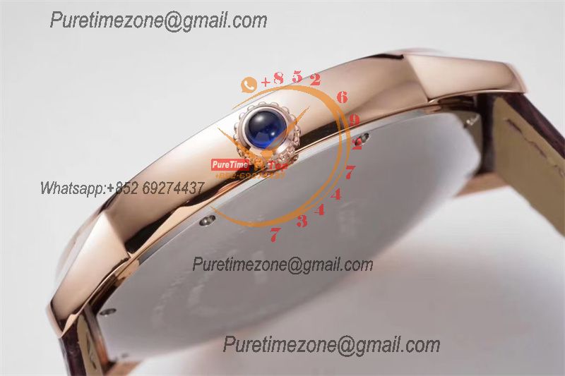 Ronde Solo W6701009 M9015 Automatic Mens Watch Best Edition AF 42mm RG Diamond Bezel White Dial Brown Leather