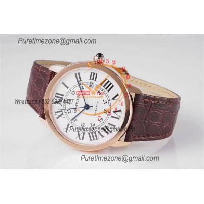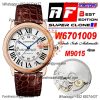 Ronde Solo W6701009 M9015 Automatic Mens Watch Best Edition AF 42mm Rose Gold White Dial Brown Leather Strap
