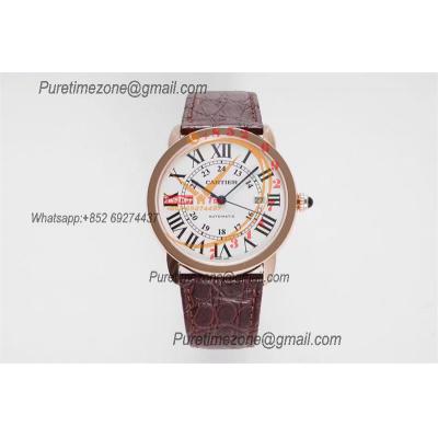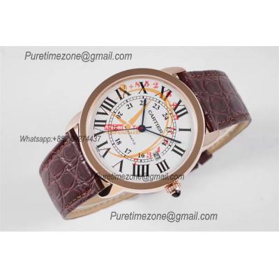 Home Cartier Ronde de Cartier Ronde Solo W6701009 M9015 Automatic Mens Watch Best Edition AF 42mm Rose Gold White Dial Brown Leather Strap